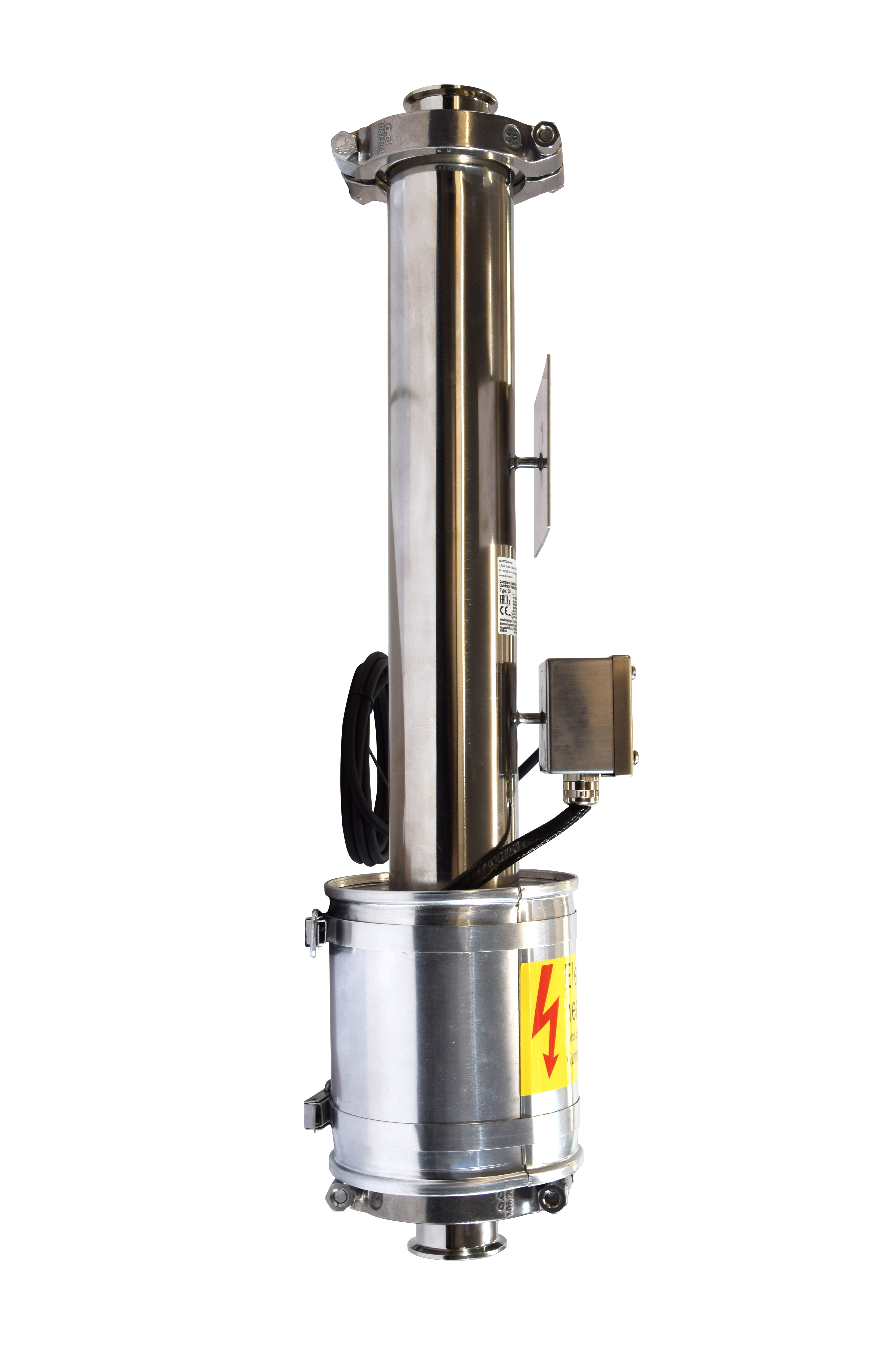 Reactor housing stainless steel DN 80 (outer surface Ra 0.80 µm, weld seams ground) with TriClamp connections according to DIN 32676 for air inlet and exhaust air (other connections on request), flow internals and droplet separator, Carulite 200 catalyst granulate and electrical trace heating.